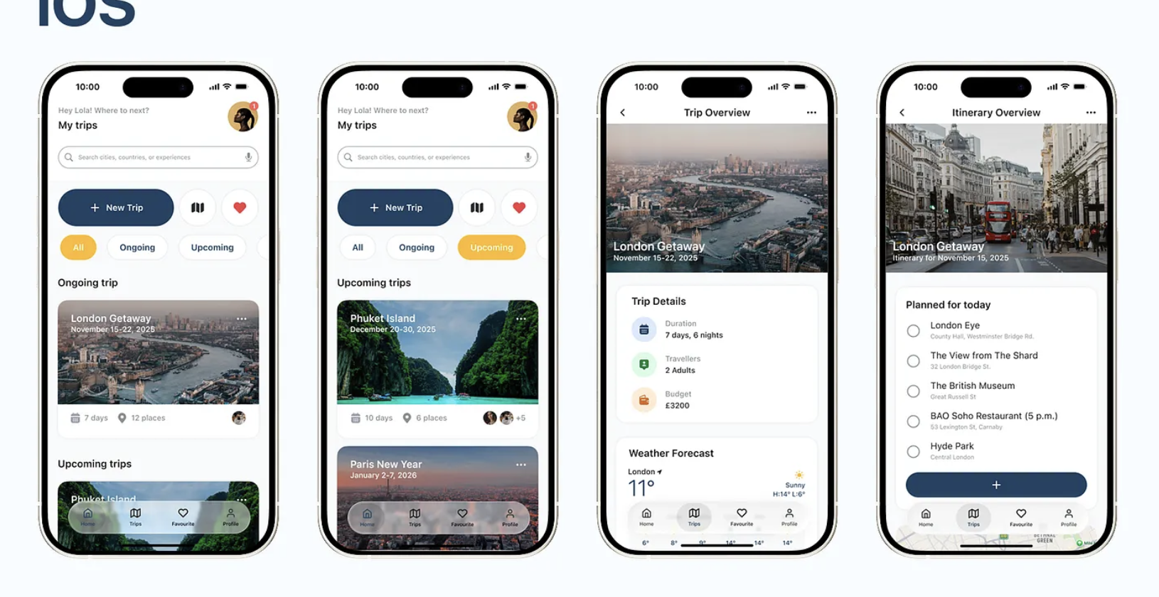 - SwiftUI views for trip creation and detail display